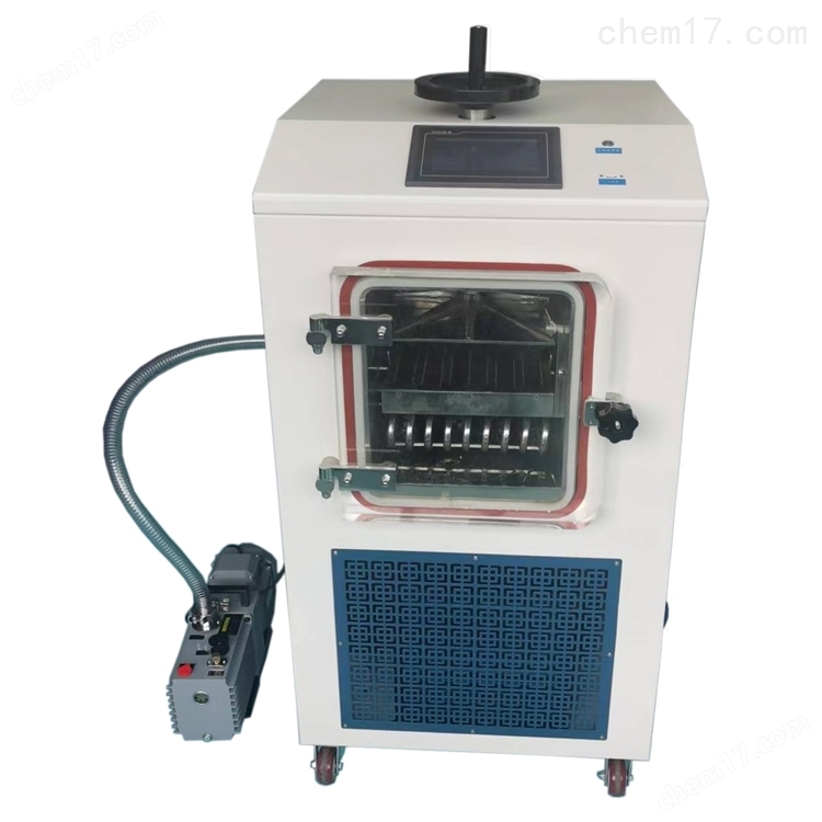 河南信陵仪器设备有限公司生产的LGJ-10FD真空冷冻干燥机,具有手动压盖功能,可以冻干西林瓶装液体,形成冻干粉针。具有搁板电加热功能,可以对样品物料进行二次干燥、解析干燥,可在升华及解析干燥阶段控制样品升温速率。可以按照预设好的冻干工艺一键操作,自动预冻、自动开启真空泵、自动升华;标配一块不锈钢物料盘,冻干面积是0.1平方,可以放入1升的液体样品。可以冻干化妆品、生长因子、胶体金、胶原蛋白、诊断试剂、植物提取液、生物制品、酶制品、石墨烯等样品物料。