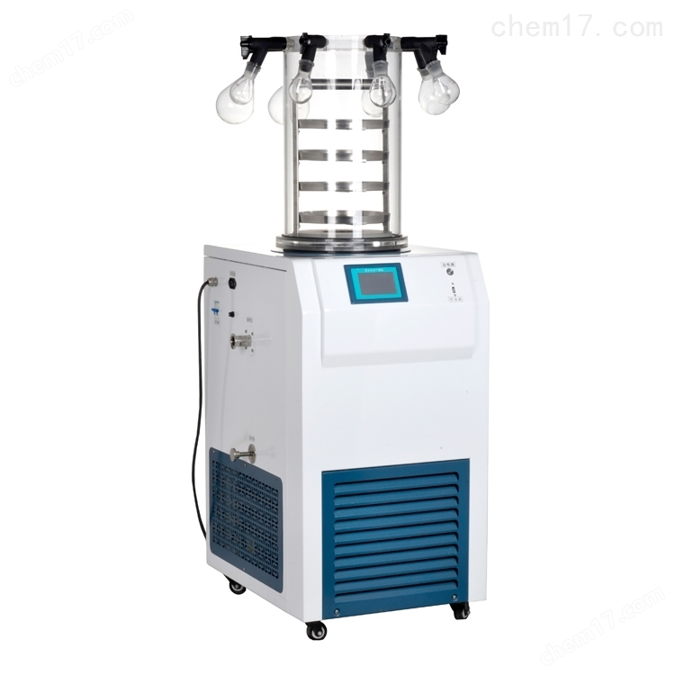 主要配置:主机一台、真空泵一台、多歧管干燥室装置一套、冻干瓶8个、橡胶阀8个、不锈钢物料盘4块、物料架一套。