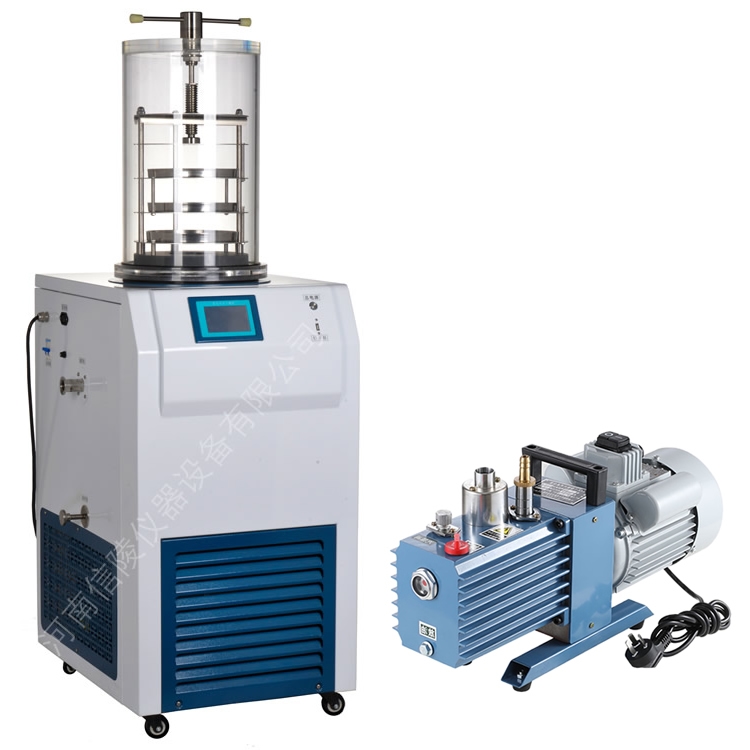 LGJ-12立式多歧管压盖型真空冷冻干燥机同时具有压盖和多歧管冻干功能,在冻干瓶装液体的同时,也可以通过8只冻干瓶低温干燥8种样品;标配4块不锈钢物料盘,物料盘总面积是0.12平方,标配一台国产真空泵,具有前期样品预冻功能,无需再配备较低温冰箱或用液氮处理。智能化数据记录系统,自动保存冻干数据,连续记录实时数据生成表格并能以实时曲线和历史曲线的形式查看,可用于冻干蛋白、多肽、胶体金、生物制品、酶制品、溶液、固体物料等,广泛应用于生命科学、生物制药、生物制品、大学科研实验室等领域。冻干后的样品可长期保存,在加水后迅速恢复原状,并具有良好的复水性,维持稳定的生物化学结构和活性。