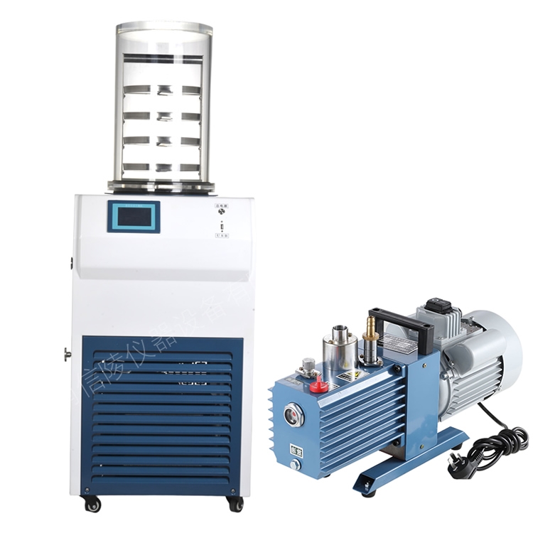 发货清单:主机:一台、真空泵:一台、物料盘:4块、真空连接管道:1套、干燥架:1套、预冻架:1套、泵油:1壶。